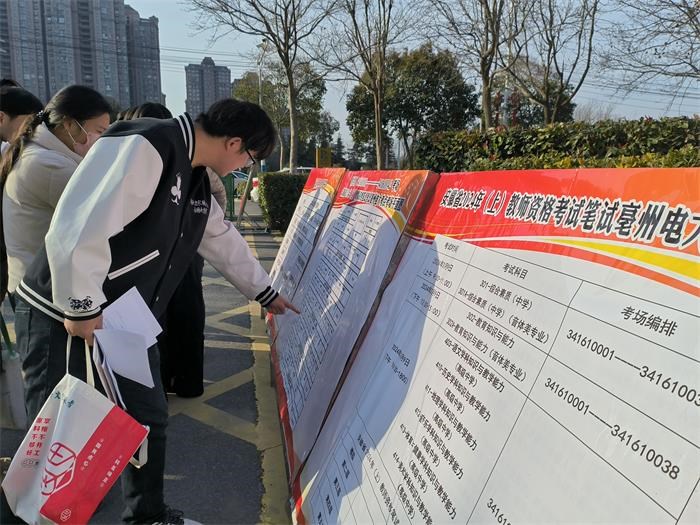 3月9日上午,随着《综合素质》科目开考铃声的响起,2024年上半年中小学教师资格考试(笔试)亳州考区的考试正式拉开大幕。我市1.6万余名考生走进考场,为实现教师职业梦想接受实战检阅。