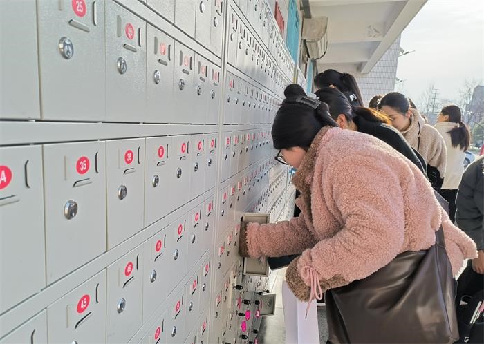 首场考试的开考时间为上午9:00。当日早上8:20许,考生们便陆续到达各考点等待入场。考点大门外醒目处摆放着考场平面图、考试科目及日程安排、考场规则、违规处理办法等内容的宣传展板。与往年不同,今年各考点还设置了手机柜和智能安检门。考生在通过安检门前,要将随身携带的手机存放手机柜中,严禁将手机带入考点。