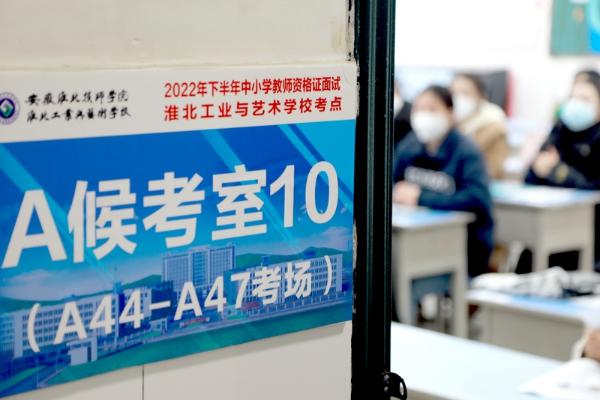 2022年下半年中小学教师资格考试面试于2023年1月7日至8日举行。淮北市考区设淮北工业与艺术学校1个考点,共74个考场、考生3139人。