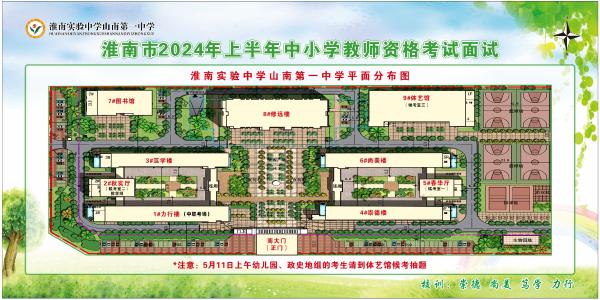 2024年上半年中小学教师资格考试(面试)将于5月11日-12日进行,我市考点为淮南实验中学山南第一中学。为确保考生顺利参加考试,现将有关事项提示如下: