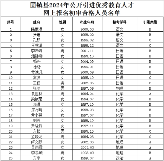 固镇县2024年公开引进优秀教育人才网上报名初审合格人员名单公布