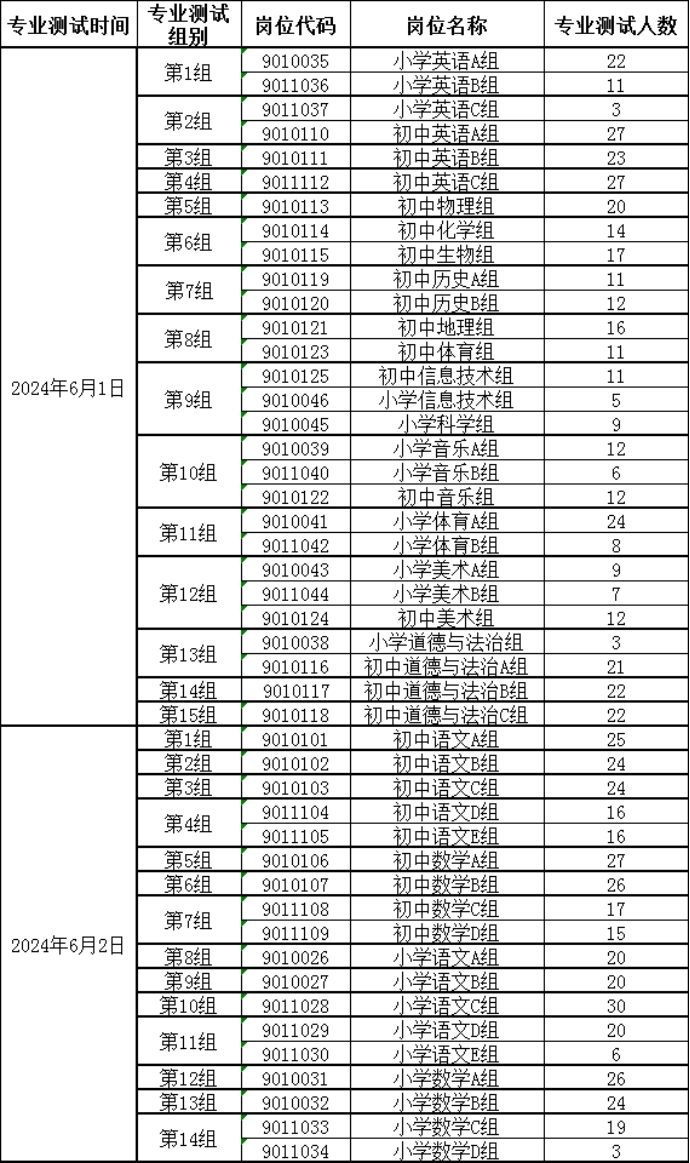 1.专业测试时间:2024年6月1日-2024年6月2日。